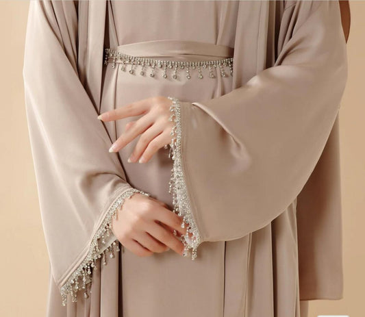 Satin Abaya With Matching Belt Made Of Diamond Tassel