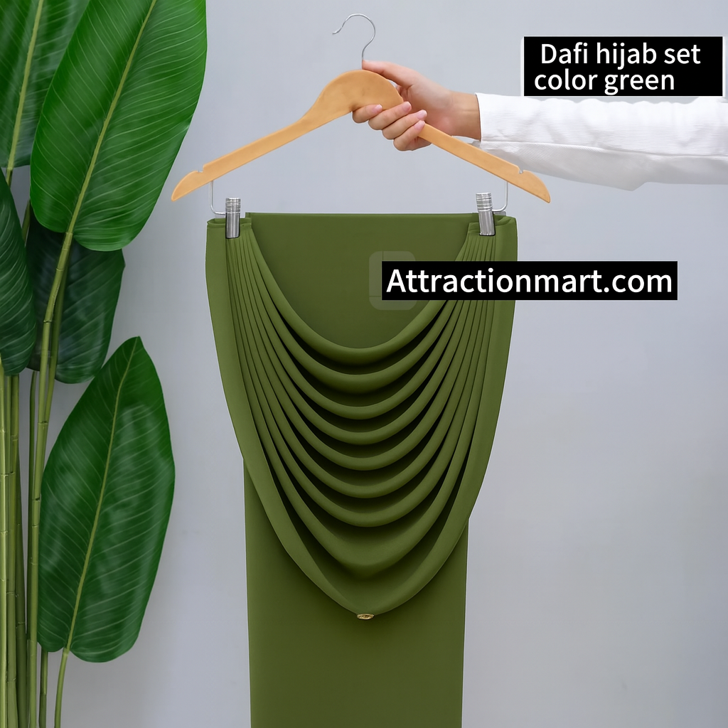 Bring elegance and simplicity together with the Dafi Hijab Set—your new go-to for a polished, feminine look.